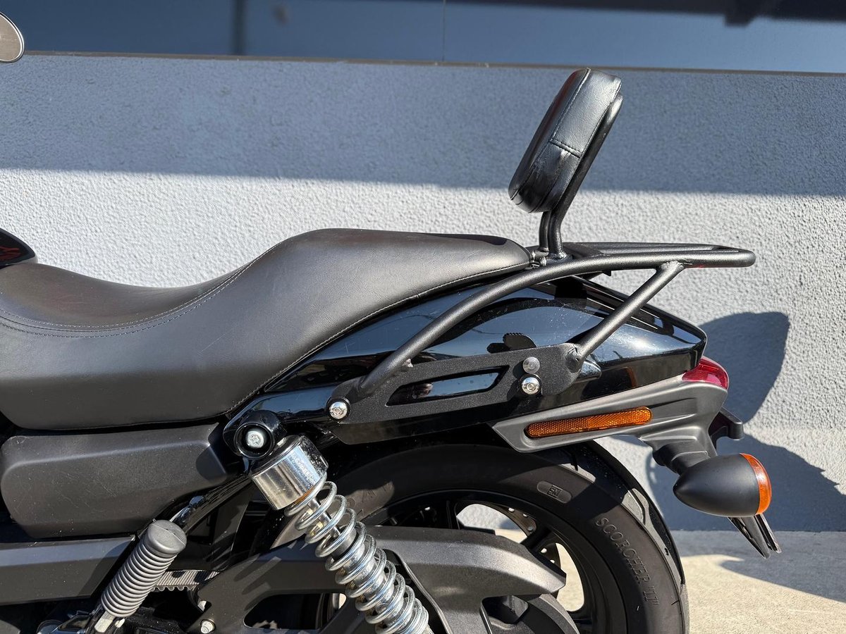 Your first Harley Davidson is waiting for you! Awesome low km Street 500! Low kms and fitted with SM muffler, bar end mirrors, sissy bar and rack!