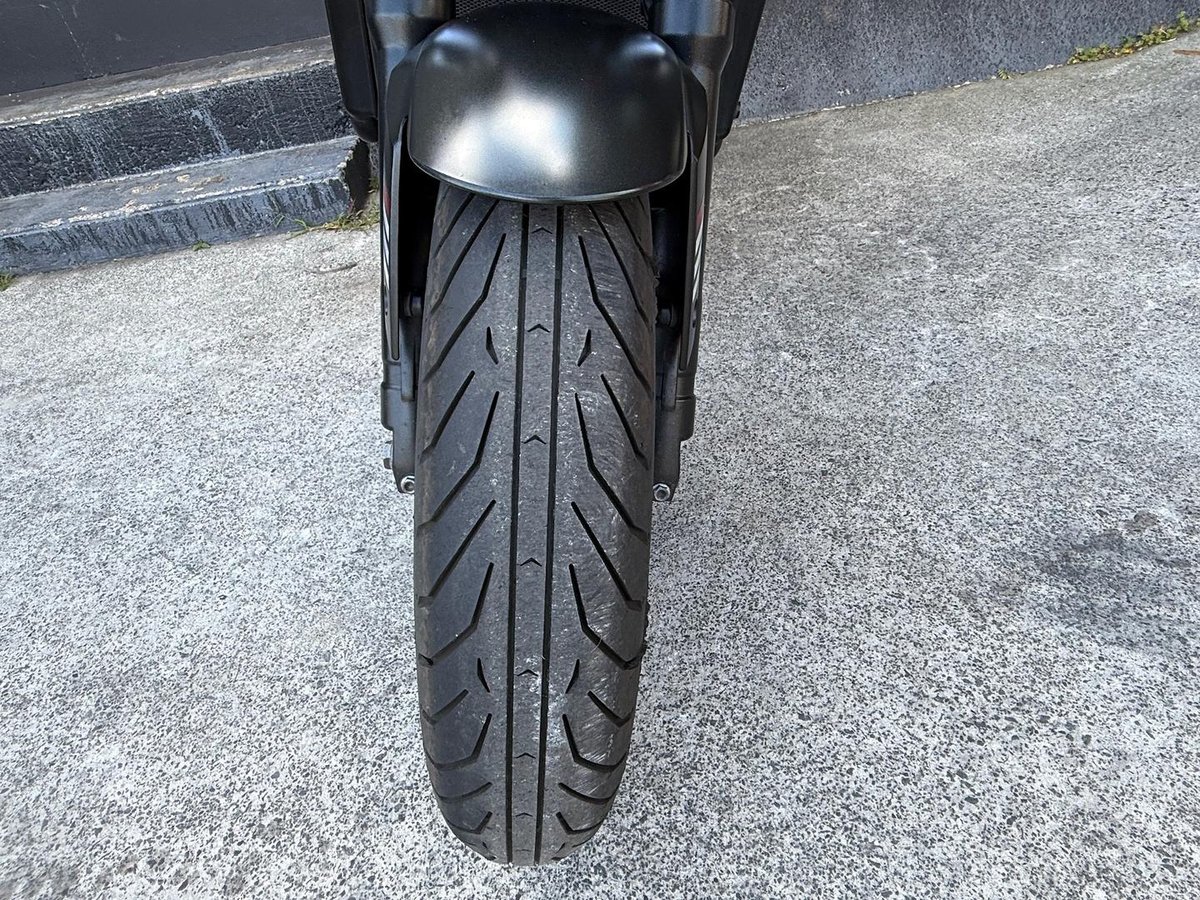 - Front Brake Description: Single wave disc; Hydraulic; Sintered metal pads; ABS