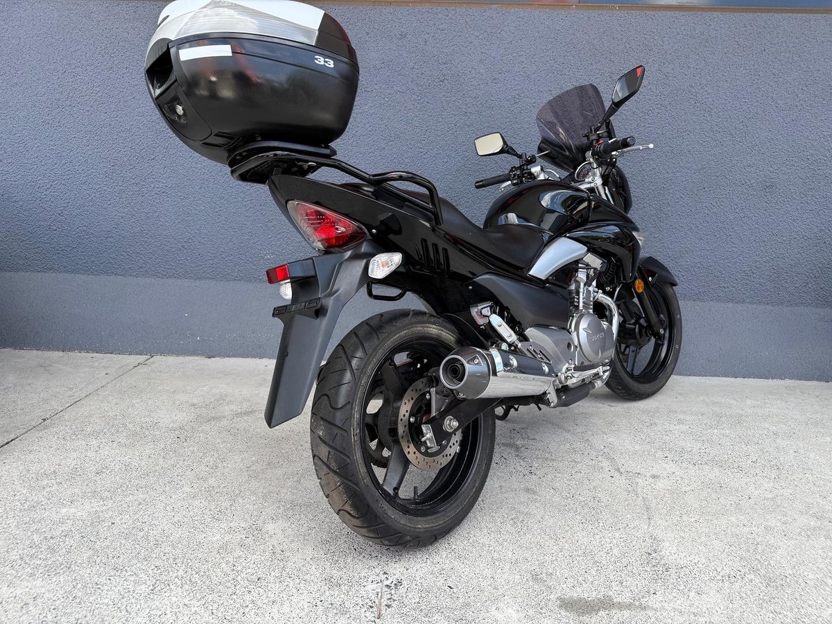 Suzuki's super popular and learner friendly, Inazuma! Powered by a twin cylinder 250 engine! This great bike's also been fitted with an MRA screen for wind protection and a 33 litre Shad Top box!